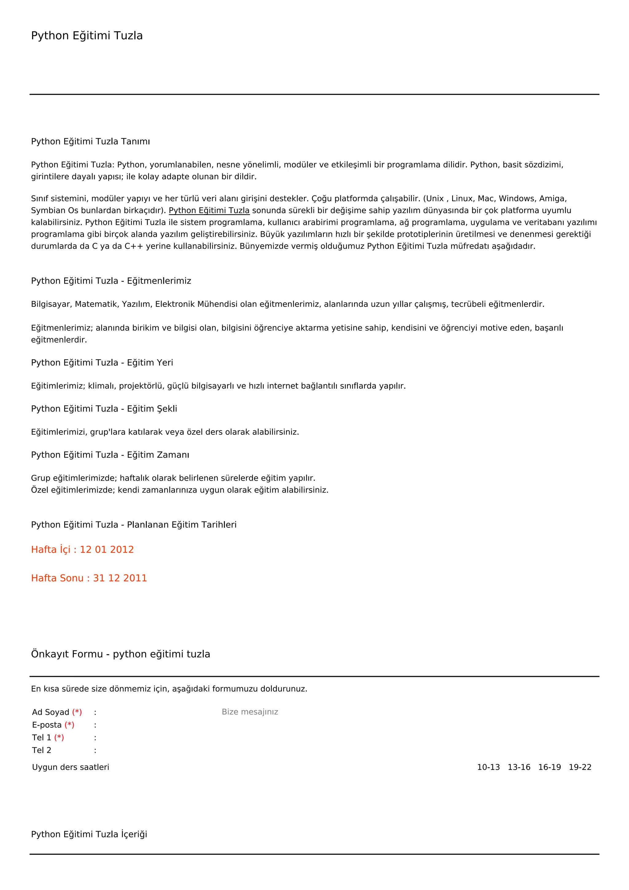 Python Eğitimi Tuzla - Planlanan Eğitim Tarihleri