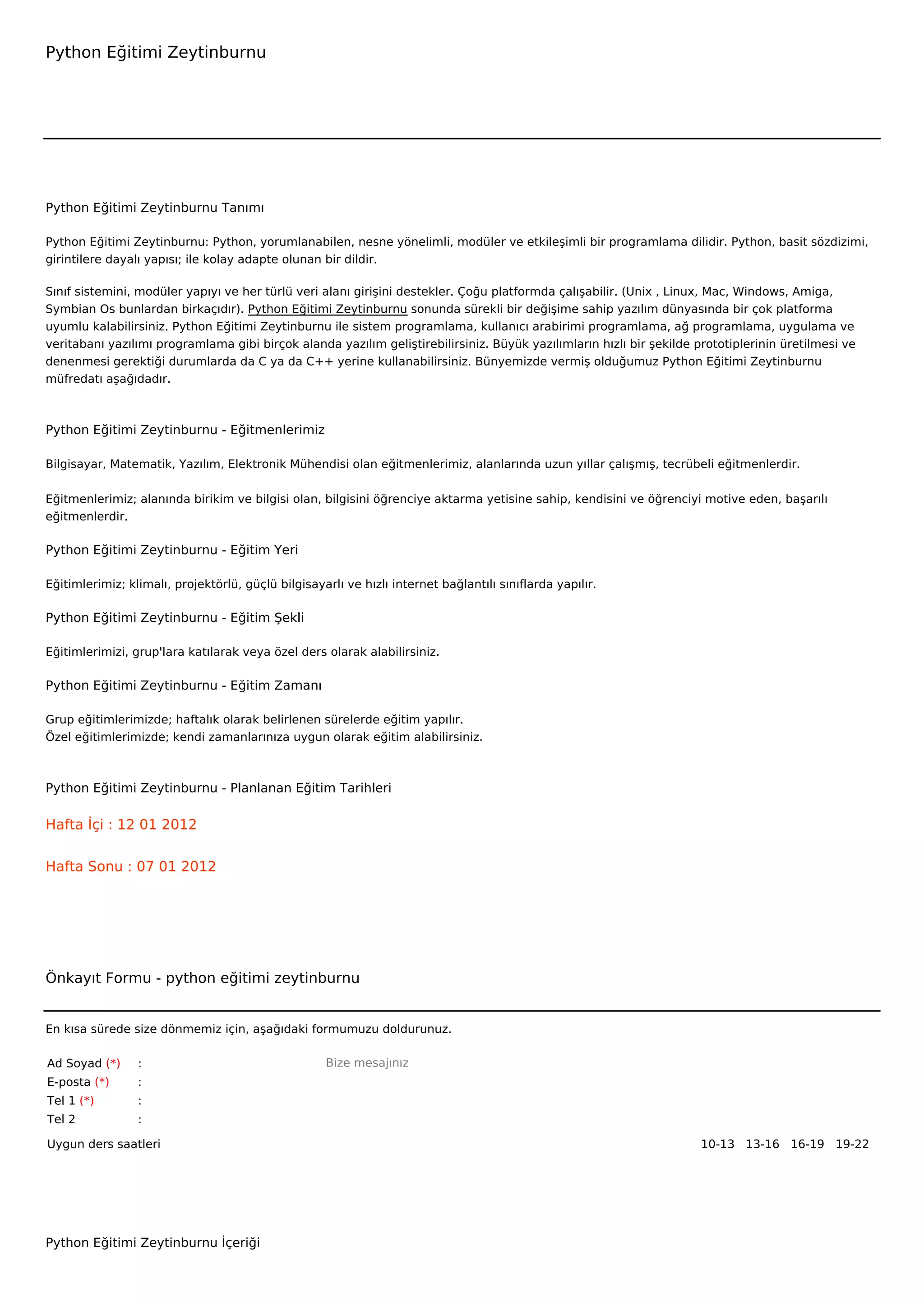 Python Eğitimi Zeytinburnu - Planlanan Eğitim Tarihleri