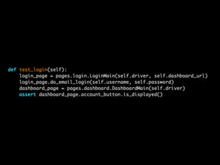 The document discusses black-box testing in software quality assurance, covering manual vs automated testing, and the benefits of using Python and Selenium for automation. It emphasizes lessons learned in testing methodologies including the use of page objects, explicit waits, and headless browsers for efficient testing. The author also critiques traditional testing tools like QTP and introduces Holmium, a plugin for improving testing with Python.