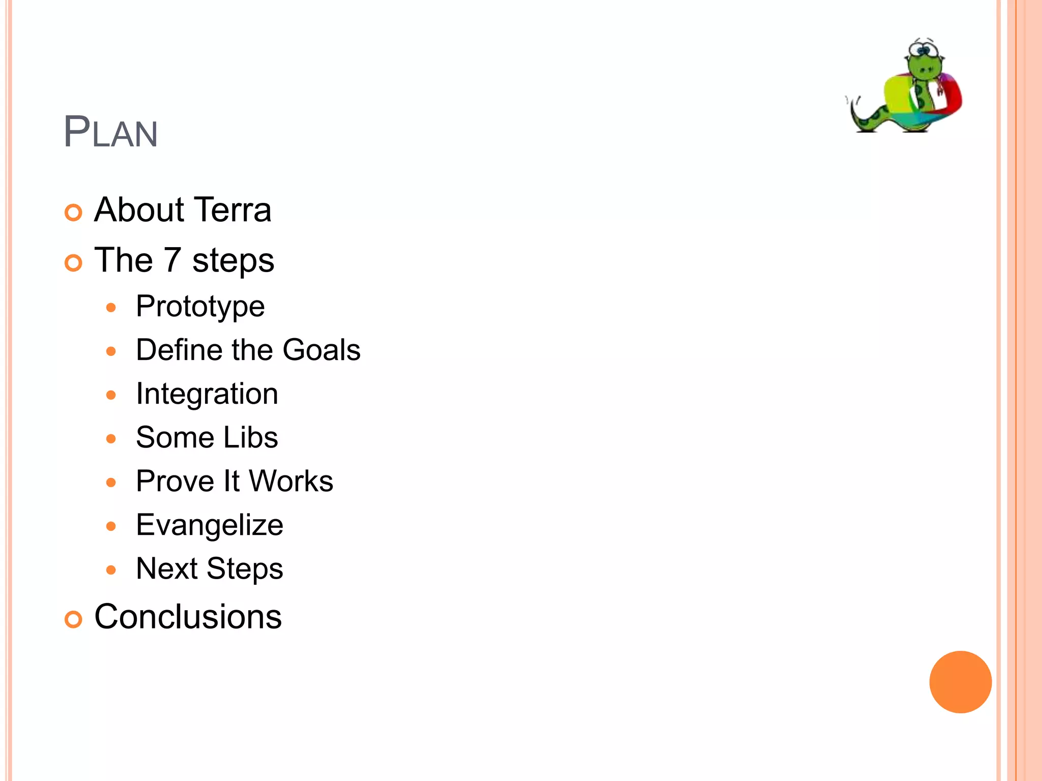 The document outlines the integration of Python into Terra, a major web portal in Latin America, highlighting its initial challenges, the development of prototypes, and eventual adoption for various systems. Key steps include establishing goals, integrating with legacy systems, and proving productivity gains through reduced code complexity and faster performance. The presentation also emphasizes the importance of evangelizing Python's benefits to stakeholders and the development of a web service using Django.