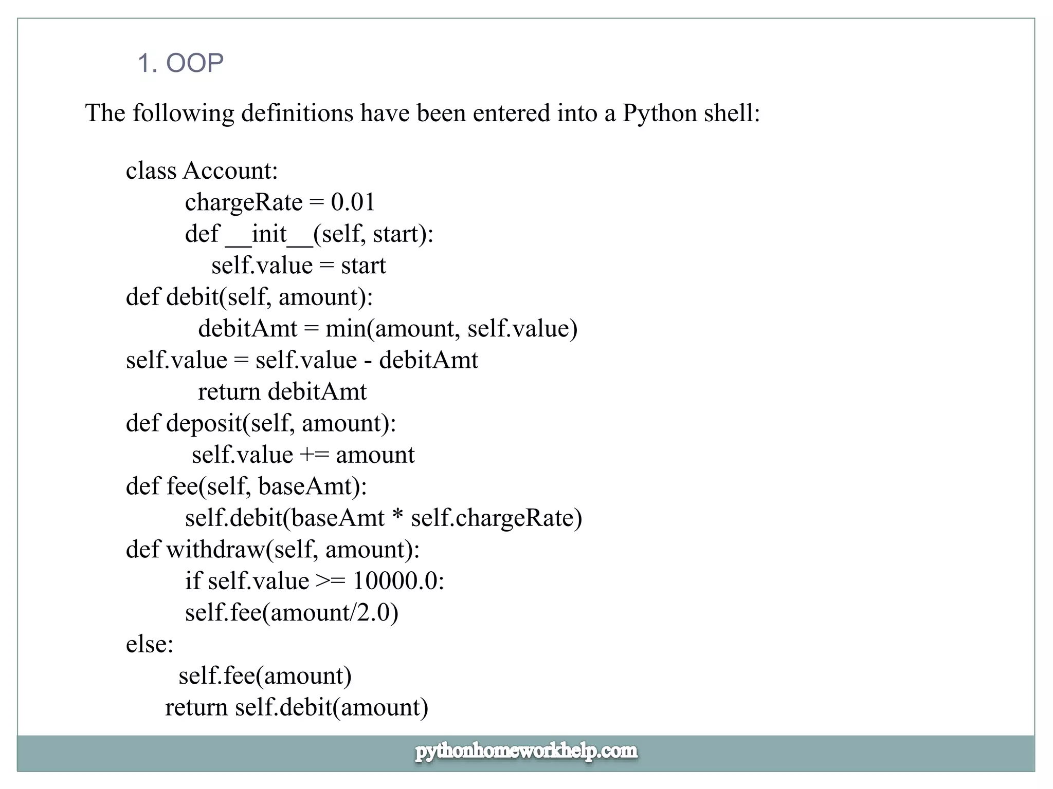 The document discusses two Python classes for simulating banking and game league systems, providing code snippets for account management and team statistics. It also includes a mathematical analysis section with difference equations related to system behavior in biological and electrical contexts. Finally, it outlines a state machine for a vending machine designed to dispense caffeine based on input denominations, showcasing how to manage states effectively.