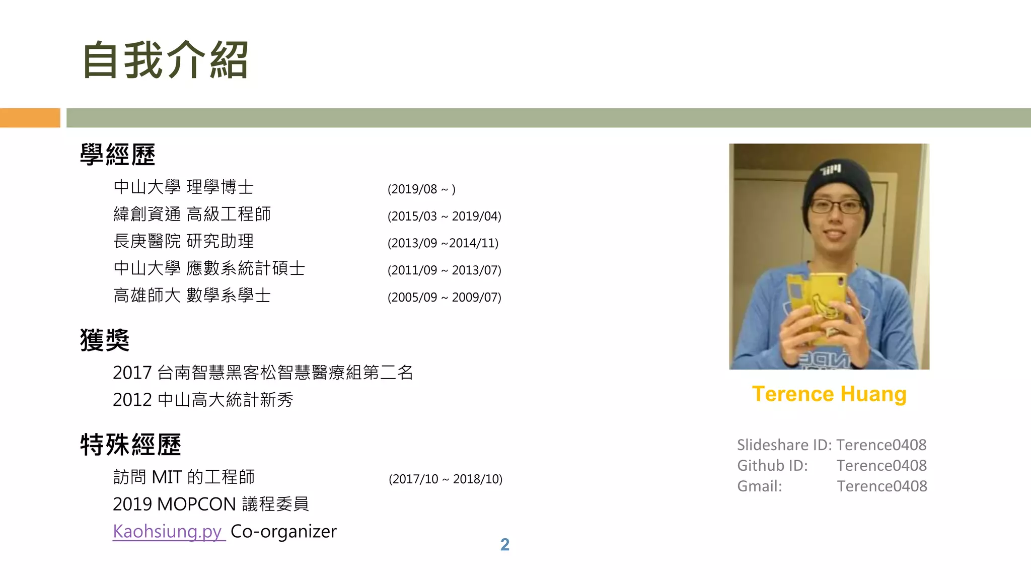 本文件介绍了Terence Huang的教育背景与工作经历,重点在于Python数据分析的环境搭建与基本操作。内容涵盖了工具和库的使用,如Anaconda、Jupyter Notebook、Numpy、Pandas等。文件同时指出了数据整理与可视化的基本方法,以及课程的预习要求和后续安排。