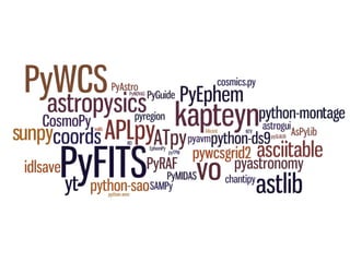 Dr. Haley Gomez gave a presentation on using Python in astronomy. Python is well-suited for astronomy as it is open source, cross-platform, easy to learn, and has many astronomy packages. The Astropy package in particular provides core functions for astronomy work, including units, coordinates, time handling, and FITS file support. Machine learning techniques also show promise for addressing challenges in processing large astronomical datasets.