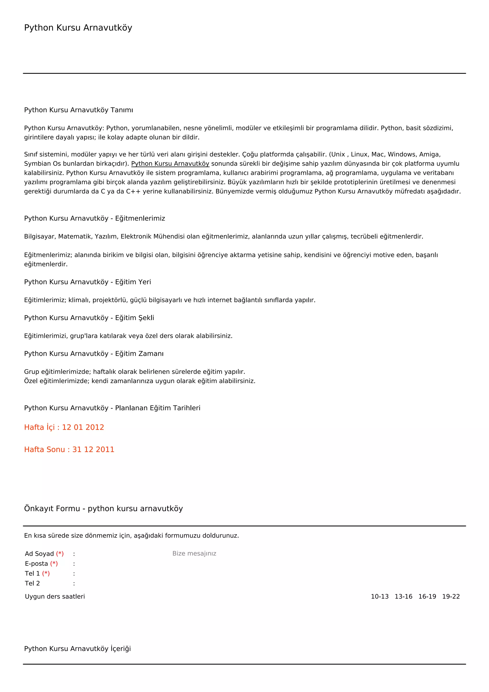 PythonKursu Arnavutköy Tanımı