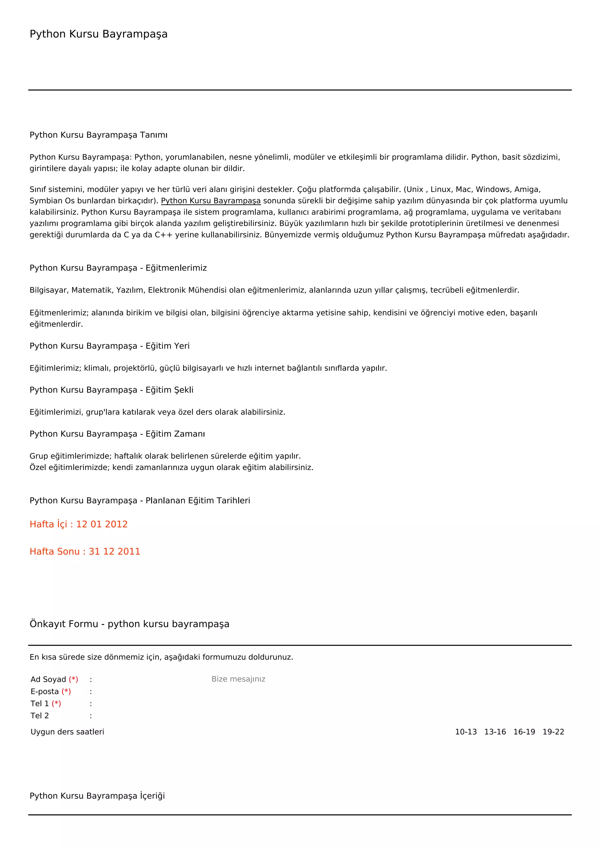 Önkayıt Formu - python kursu bayrampaşa