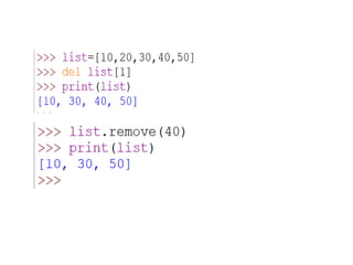 • Deleting anelement from the list can be done using