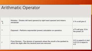 Python is a programming language that uses objects, modules, threads, exceptions and automatic memory management. It is simple, portable, extensible, and has built-in data structures. Python is also open source. It provides a framework with system class libraries, runtime environment, and compiler/interpreter to create applications like computer programs, mobile apps, and web apps. The framework offers standard libraries, codecs, and templates to build many objects.