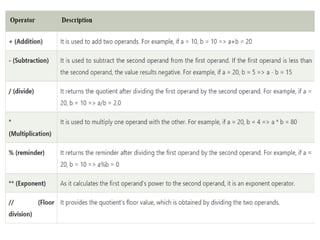Python is a high-level, versatile, and dynamic programming language that supports various programming paradigms, making it easy to learn and use. It is widely utilized across multiple fields, including web development, data science, artificial intelligence, and software development, due to its extensive libraries and active community. Python's syntax is simple and readable, which enhances code maintainability and accelerates the development process.