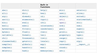 • The python interpreter has several functions that are always present