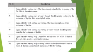 print ("Written content in the file successfully") fh.close()