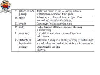 The document provides an introduction to Python programming, including details about Python's history, versions, data types, strings, and code execution. It discusses how to install Python and write basic programs. Key reasons for using Python are its object-oriented nature, readability, large standard library, cross-platform capabilities, and ease of use. The document also covers string methods and slicing, numeric data types, installing Python, and running code in interactive and script modes.