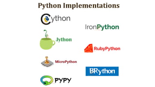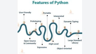 This document provides an overview of the Python programming language. It discusses the history of Python, noting that it was created in 1989 by Guido van Rossum as a hobby project. Python is now one of the most widely used languages, particularly in areas like data science, machine learning, and web development. The document also outlines why Python is a useful language to learn, noting opportunities in data science, its ease of use, and job stability. Finally, it briefly discusses how Python files are run and interpreted.