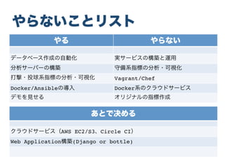 2015二日目, @haru860 さん基調講演で, 「価値を創りだすプロセス」について言及されてました. →http://www.slideshare.net/ssuserafaef6/pycon-jp-2015- keynote の61スライド目にて • ワイがインセプションデッキを書いたのは一ヶ月前, 考えが一緒で何だかとても嬉しかったです(^O^) • この発表で使った「価値」「プロセス」の言い回しは @haru860 さんのオマージュです(感謝!).
