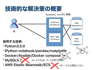 野球Hack~Pythonを用いたデータ分析と可視化 http://www.slideshare.net/shinyorke/hackpython-pyconjp
