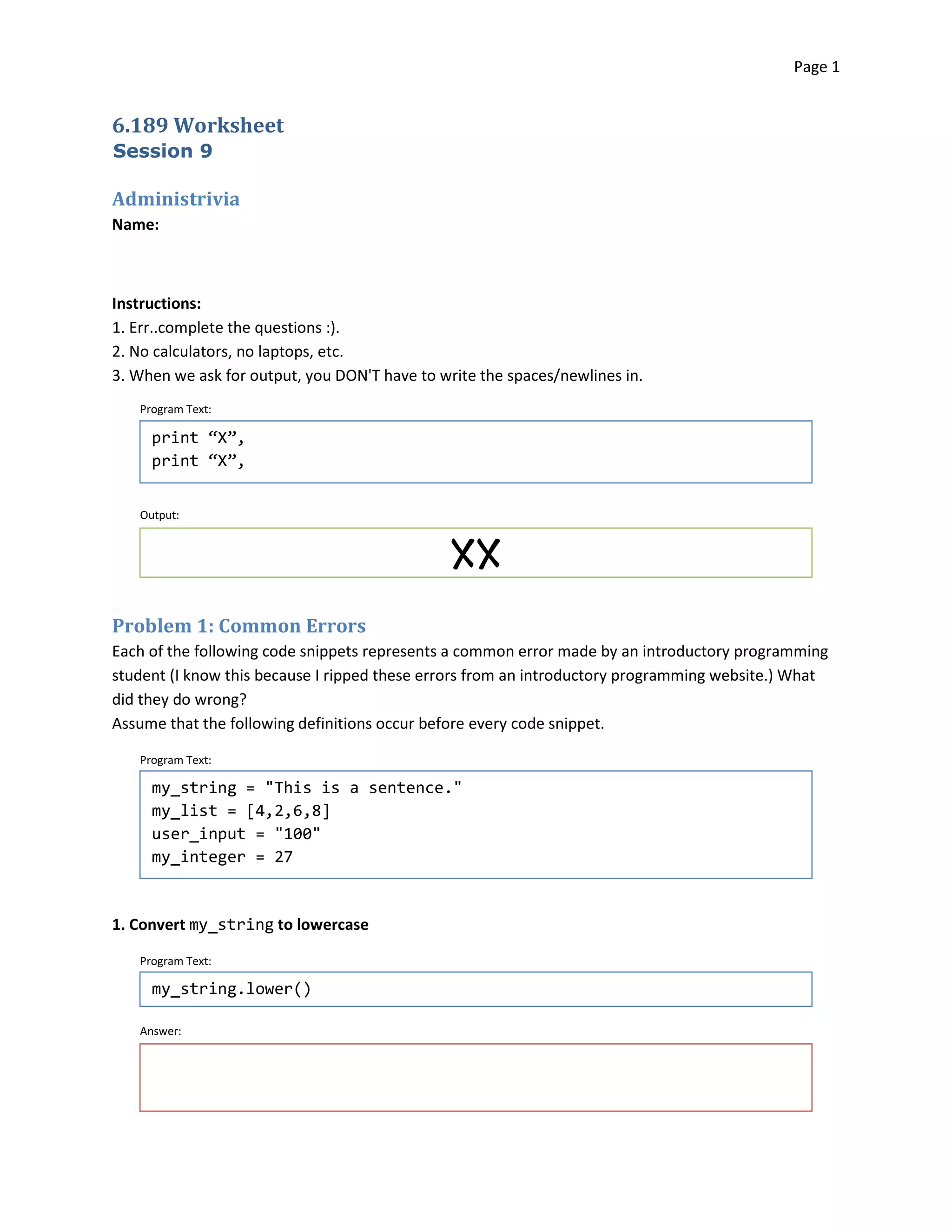 Problem 1: Common Errors