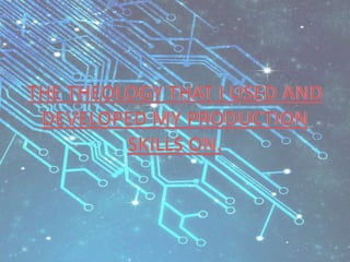 The document discusses the equipment, software, and online applications used to create and present a media production project. The main equipment was a Nikon D5100 camera and Nikon lenses, which were used to film footage. Final Cut Pro and Motion 5 were used for editing, adding titles, and converting the film to black and white. Additional software included GarageBand and iPhoto. Online applications like Prezi, Storyboard, and SlideShare were used to present writing, while YouTube and Vimeo hosted the finished production. Overall, the document discusses the development of skills in using various equipment, software, and online tools for a media production project.