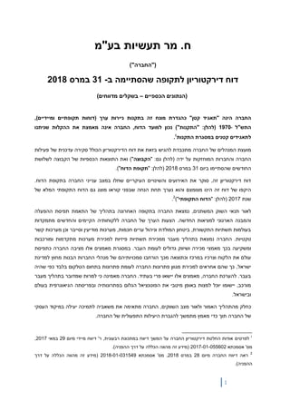 โซืขืืืืโฌ โซืืืืโฌ โซื ืืืโฌ31โซืืืจืกโฌ2018โซืืชืงืฉืจืืืืชืืโฌ โซืืืกืืจืชโฌ โซืืชืืืืืโฌ โซืืืโฌ โซืืคืื ื ืกืืืชโฌ โซืืืืืโฌ โซืืืืืชโฌ โซืขืืืโฌ โซืืืืจืโฌ โซืืกืชืืโฌ โซืืืืืโฌ โซืืืืโฌ โซืืฉืจโฌ โซืืืฉืจืืโฌ โซืืื ืงืืืืโฌ โซืืชืืืืืืโฌ โซืฉืืืฉืชโฌ โซืขืโฌโซืโฌ โซืฉืโฌ โซืืกืโฌ-271โซืืืืืื ืโฌ.โซืฉ"ืโฌ โซืืโฌ โซืคืืจืืโฌ โซืืืืโฌโซืืขืืืืชโฌ โซืืืืืจืืชโฌ โซืืืืืโฌ โซืืชโฌโซืืืืโฌ โซื ืืืโฌ โซืืืโฌ โซืืืืจืโฌ31โซืโฌโซืืจืกโฌ2018: 1.โซืฉืโฌ โซืืกืโฌ โซืืคืืชโฌ โซืืโฌ โซืืืืจืโฌ โซืฉืโฌ โซืืขืฆืืโฌ โซืืืืโฌ150,000โซืโฌโซืืืืโฌ โซ(ื ืืืโฌ .โซืฉ"ืโฌ โซืืคืโฌ31โซืืืจืกโฌ2018โ 200,294.)โซืฉ"ืโฌ โซืืืคืโฌ 2.โซืโฌ โซืืคืืชโฌ โซืืโฌ โซืืืืืโฌ โซืืืืโฌ โซืืืกโฌ-25%.โซืืืืโฌ โซ(ื ืืืโฌ31โซืืืจืกโฌ2018โ29.1%.) 3.โซืื ืืืืโฌ ,โซืืืื ืืืชโฌ โซืืืืฅโฌ โซืืืืืื ืืืชโฌ โซืืืชืืืืืืืืชโฌ โซืืฆืืจืืฃโฌ โซืืืืืื ืืืชโฌ โซืืืชืืืืืืืืชโฌ โซืืืโฌ โซืืืืกโฌโซื โฌโซืืกืืโฌ โซืืืืโฌ ,โซืคืื ื ืกืืืโฌโซืขืโฌ ,โซืขืชโฌ โซืืืโฌ ,โซืืขืืโฌ โซืืโฌ โซืืขืฆืืโฌ โซืืืืโฌ3.โซืืืืโฌ โซ(ื ืืืโฌ31โซืืืจืกโฌ2018-1.74.) 4.โซืืืกโฌEBITDAโซืโฌ โซืฉืืืโฌ โซืขืชโฌ โซืืืโฌ โซืืคืืชโฌ โซืืโฌ โซืจืืืืชโฌ โซืฉืโฌ โซืฉืืืคืืชโฌ โซืืืืืืืชโฌ-2.โซืืืืโฌ โซ(ื ืืืโฌ31โซืืืจืกโฌ2018- 2.11.) 5.โซืฉโฌโซืโฌโซืืืืืจโฌ โซืืืืโฌ โซืืชืืโฌ โซืืคืื ื ืกืืืโฌ โซืื ืืกืืโฌ โซืื ืืืืโฌ โซืืืืืื ืืืชโฌ โซืืืชืืืืืืืืชโฌ โซืขืืจโฌ,โซืืขืืโฌ โซืืโฌ โซืืชืคืขืืืโฌ โซืขืโฌ ,โซืขืชโฌ โซืืืโฌ85%.โซืืืืโฌ โซ(ื ืืืโฌ31/03/2018โ75.75%.) โซืืืืืืชโฌ โซืืืืืจโฌ โซืืืืืืโฌ โซืืืกืืืโฌ โซืฉื ืงืืขืโฌ โซืืคืื ื ืกืืืชโฌ โซืืืืืโฌ โซืืืืืชโฌ โซืขืืืืโฌ โซืขืโฌ โซืืงืฉืจโฌ โซืืื ืืืโฌ โซืชืืื ืืืชโฌ โซืืงืื ืชโฌโซืืืืฆืืืชโฌ โซืืื ืโฌ โซืืืชืืืชโฌ โซืืืืโฌ โซืืืงืฃโฌโซืืขืกืงืโฌ โซืืืืืงืืโฌ โซืืฆืคืืโฌ โซืืคืขืืืืชโฌ โซืืืืงืฃโฌ. 9.โซืคืจืกืืโฌ ,โซืืโฌ โซืืืโฌ โซืืคืจืกืืโฌ โซืขืืืจโฌโซืื ืืจืฉโฌ ,โซืืืืจืโฌ โซืฉืโฌ โซืืืชืืืืืืืืชโฌ โซืืฆืืชโฌ โซืืืืจโฌ โซื ืชืื ืืโฌ โซืืืโฌ โซืืืโฌ โซืืืืจืโฌ โซืืชืงื ืโฌ38,)โซืืืืืืืโฌ โซืชืงืืคืชืืืโฌ โซ(ืืืืืชโฌ โซืขืจืโฌ โซื ืืืจืืชโฌ โซืืชืงื ืืชโฌ โซืโฌโซืืชืฉ"ืโฌ-1970-6 .โซืืชืจืืืชืโฌ โซืืืืฆืืืโฌ โซืขืโฌ โซืืื ืืืืโฌ โซืืงืืืฆืโฌ โซืขืืืืโฌ โซืืืโฌ โซืืืืโฌ โซืืืืจืโฌ โซืฉืโฌ โซืืื ืืืืโฌ โซืืืขืฆืชโฌ โซืืจโฌ โซืืืืโฌ โซืืืืจืงืืืจืืืโฌ โซืื"ืจโฌ โซืืืคืจืโฌ โซื ืืจโฌ โซืื ื"ืโฌ โซืชโฌโซืืจืืโฌโซืืืืจืงืืืจืืืโฌ โซืืืโฌ โซืืืฉืื