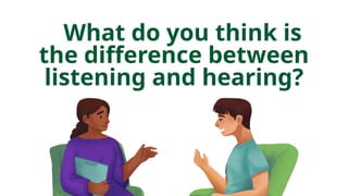 The document discusses the concept of analytical listening in problem-solving, differentiating between hearing and listening, and outlining four types of listening: appreciative, empathic, comprehensive, and analytical. It provides scenarios to illustrate each type of listening and emphasizes the importance of active engagement and critical evaluation in analytical listening. The text concludes with an assignment aimed at enhancing analytical listening skills through structured reflection on a podcast discussion.