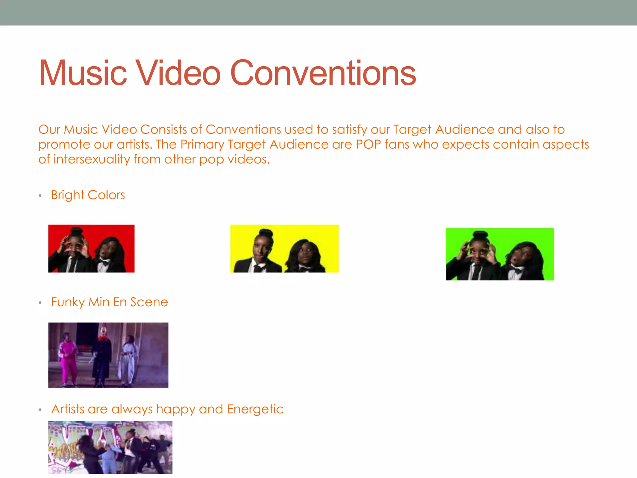 The document discusses conventions used in music videos, digipaks, and advertisements to promote artists and stimulate album sales. Some key conventions mentioned include using bright colors, images of happy and energetic artists, fashionable clothing, and links between the different media like similar color schemes and images. The goal is to clearly link the separate products to appeal to the target pop music audience and associate the products with the genre.