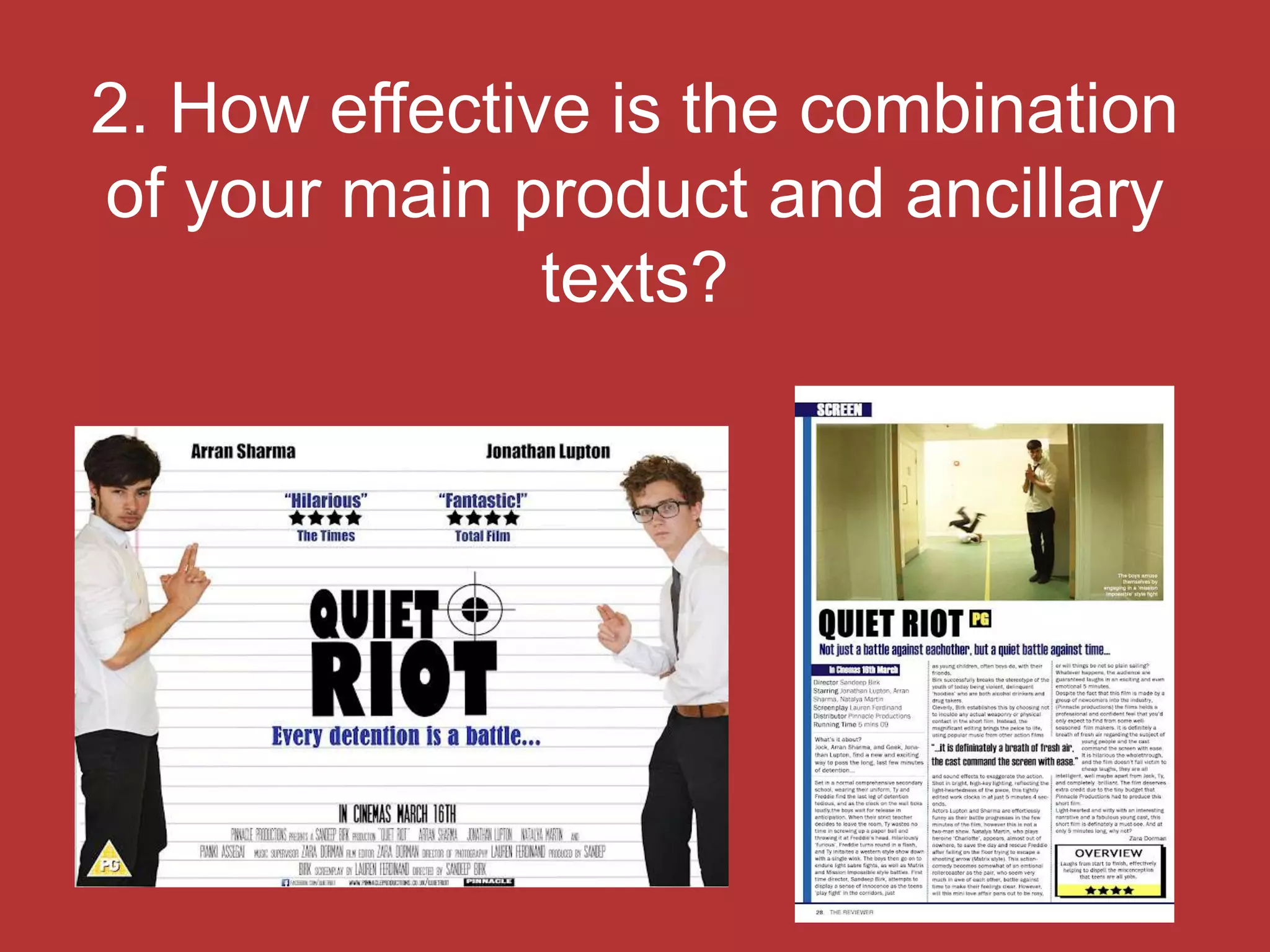 The combination of the main film and ancillary tasks of a poster and film review were effective. Similar bright backgrounds, blue color schemes, bold fonts, and inclusion of a web address in both tasks linked them together and promoted the lighthearted action comedy genre of the 5-minute film. Images in the tasks hinted at the action genre without spoiling the plot.