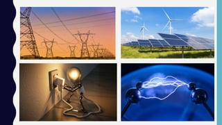 Electricity is a form of energy made up of charges that can produce light, heat, or motion. There are two kinds of electricity: static, which is an electric charge that collects on objects, and current, which is the flow of electric charges through conductors like wires. Electricity produces forces of attraction or repulsion between charged objects through an electric field.