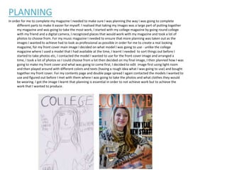 They gained experience with photography, learning camera angles and settings to better portray the music genre. Planning was also important, such as contacting models and arranging shoots.