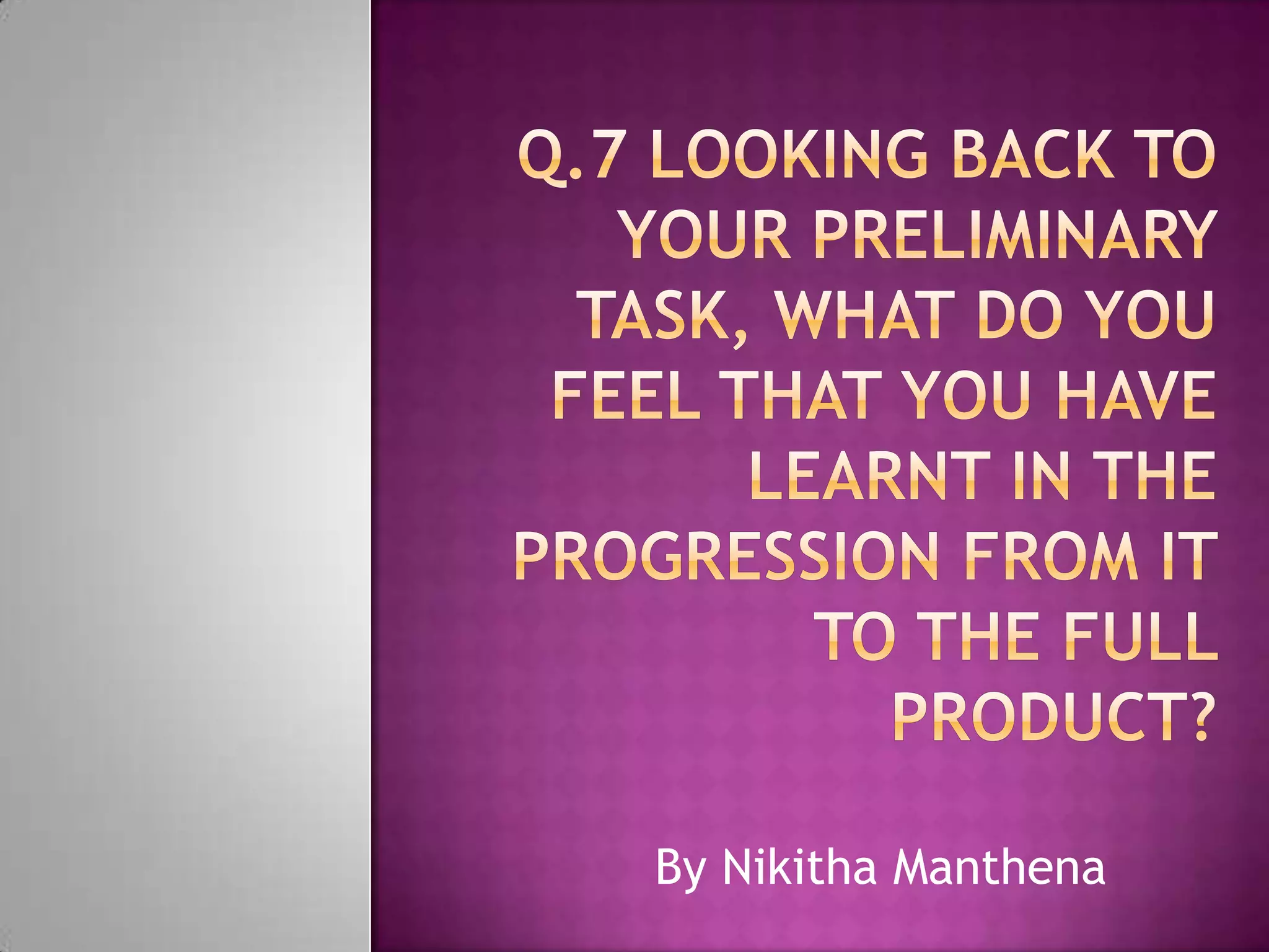 3) Through practicing with the equipment on the preliminary task and rehearsals, they felt more confident operating the camera and equipment, which saved them time during the main filming.