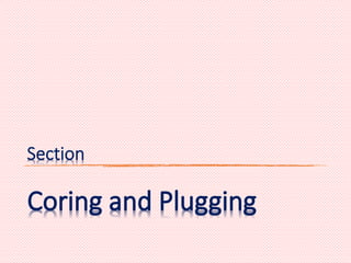 This document provides an overview of petrophysics and core analysis methods. Petrophysics is the study of physical and chemical rock properties and their interaction with fluids. Key properties include lithology, porosity, water saturation, and permeability. These properties are measured through well logs, core analysis, and seismic data. Core analysis involves taking rock samples from wells and measuring properties like porosity and permeability on plugs taken from the core. The fluid content of cores can indicate hydrocarbon saturation but is altered during retrieval. Routine core analysis involves testing plugs taken along the entire reservoir section.