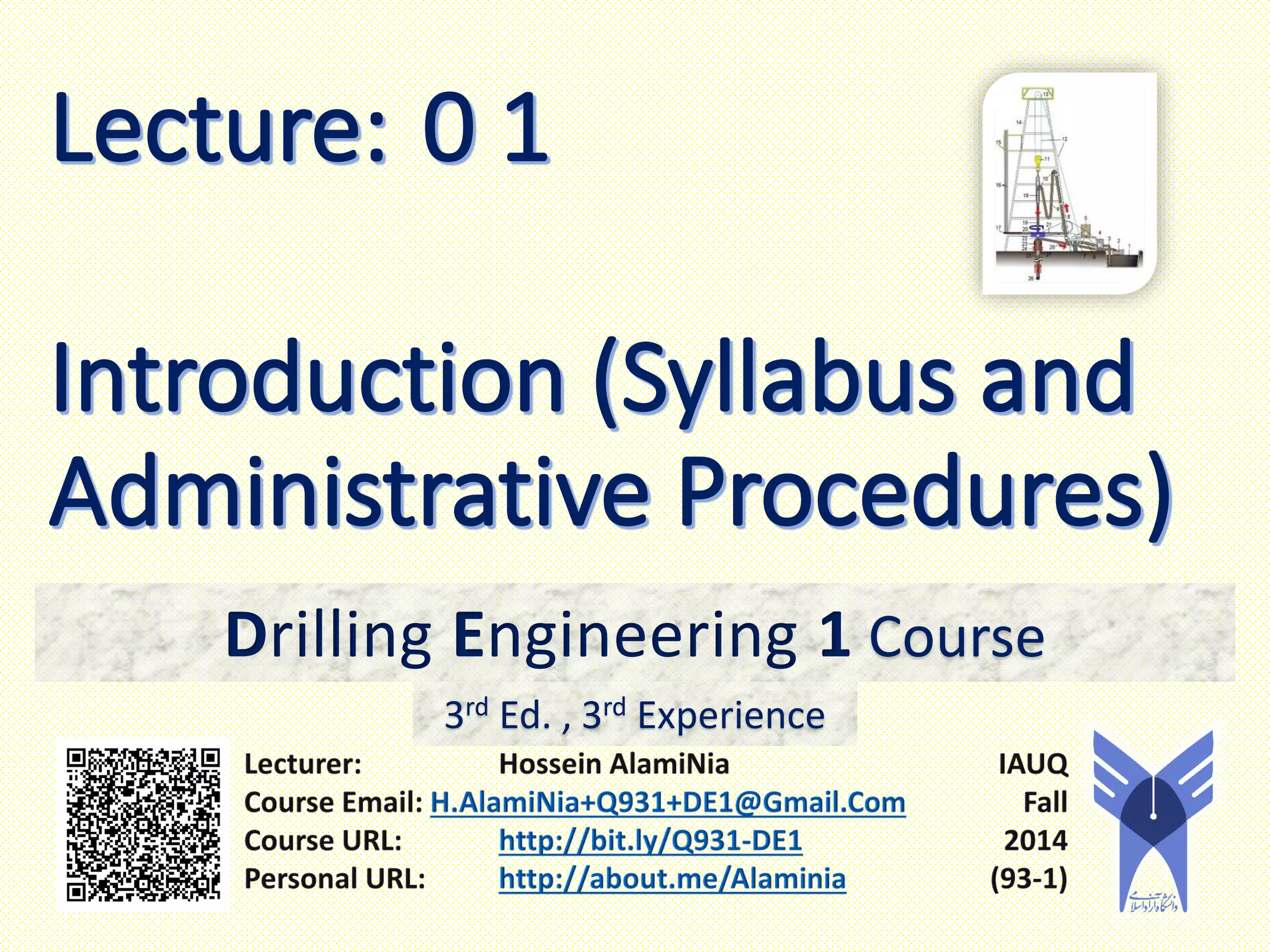 This document outlines the syllabus for a drilling engineering course. It covers topics such as an introduction to drilling operations and well construction, well classifications, personnel involved in drilling, rig components and calculations, drill strings, drill bits, and drilling fluid technologies. The course aims to provide a systematic theoretical and practical study of drilling engineering through lectures, tutorials, and class projects. Assessment will be based on a final exam, attendance, and class activities. The course is designed to teach both major and minor petroleum engineering students about key aspects of drilling operations.