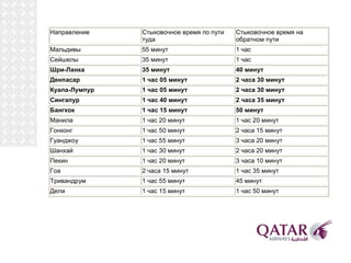 The document contains information about Qatar Airways, which is described as the "World's 5-star airline". It provides details on Qatar Airways' fleet size, which includes over 60 aircraft from manufacturers like Boeing and Airbus. It also describes the amenities available on Qatar Airways flights, such as its Oryx in-flight entertainment system which offers movies, TV shows, music, games and other content to passengers.