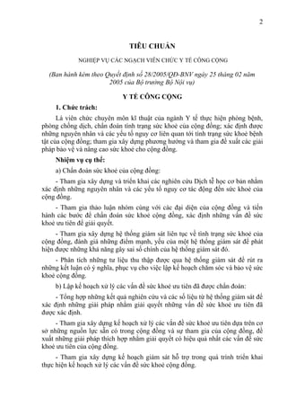Quyết định số 28/2005/QĐ-BNV của Bộ Nội vụ Việt Nam ban hành tiêu chuẩn nghiệp vụ cho các ngạch viên chức y tế công cộng, bao gồm chức trách và nhiệm vụ cụ thể của từng ngạch. Tiêu chuẩn này sẽ được sử dụng để hướng dẫn tuyển dụng, sử dụng và quản lý đội ngũ viên chức trong lĩnh vực y tế công cộng. Quyết định có hiệu lực thi hành sau 15 ngày kể từ ngày công bố.