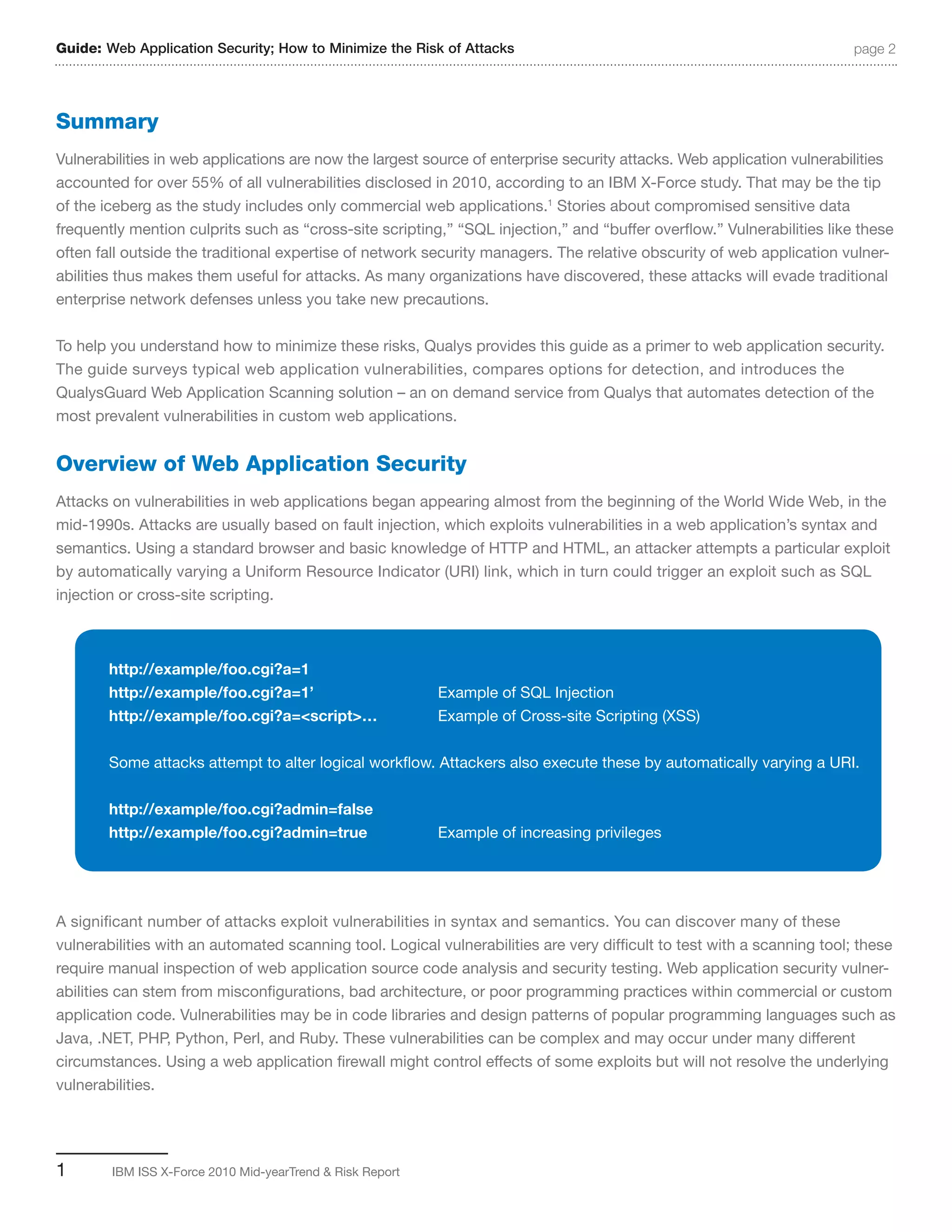 This document provides an overview of web application security and vulnerabilities. It describes how various exploits like SQL injection and cross-site scripting can compromise web applications. The document also categorizes common types of vulnerabilities like authentication issues, authorization problems, client-side attacks, and information disclosure. It emphasizes that automated scanning tools are effective for detecting many syntax-based vulnerabilities, while more complex logical flaws may require manual code analysis.