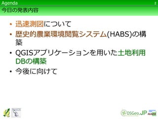 QGISアプリケーションを用いた土地利用 DBの構築 • 今後に向けて 2Agenda