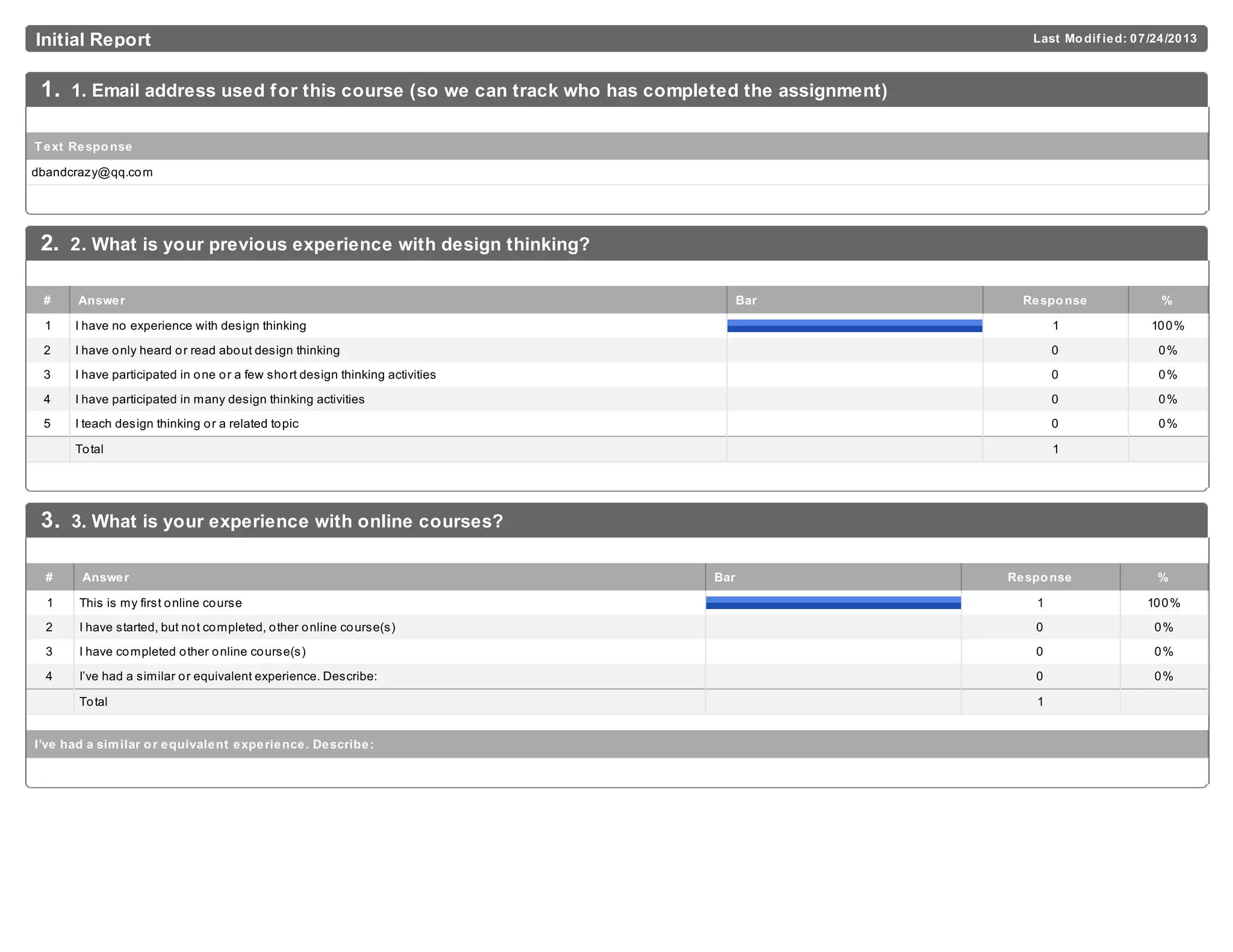 - The respondent has no prior experience with design thinking and this is their first online course. They are interested in the subject matter and want to earn a certificate.