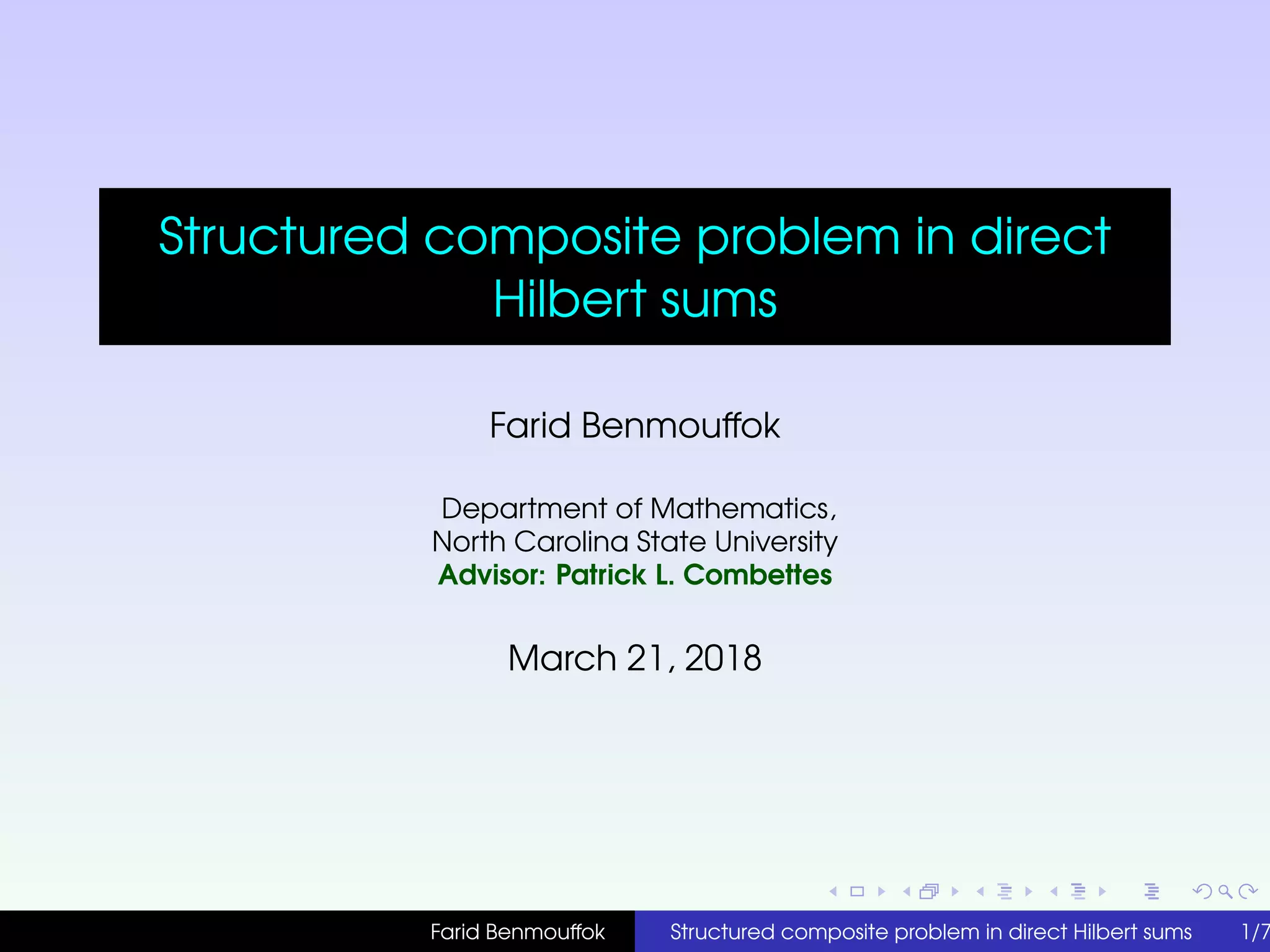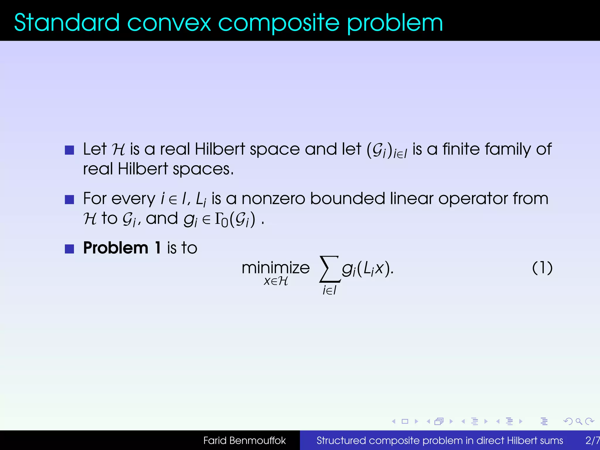 This document presents a structured composite minimization problem involving minimizing the sum of functions over direct Hilbert sums. It gives examples of how standard convex composite problems and regularization problems can be represented as special cases of this structured problem. It discusses options for activating the functions using proximal operators or separately handling the linear operators and functions. It poses two open problems - developing an efficient distributed block iterative method to solve the structured problem and extending it to maximally monotone inclusions.