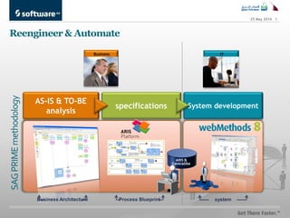 The document discusses system development specifications for a business. It includes an AS-IS and TO-BE analysis of the current and future business architecture and process blueprint for a new system.