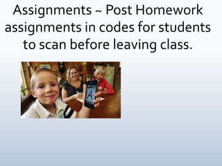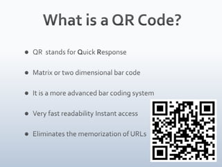 This document discusses ways to promote a business through advertisements, guided tours, creative ice breakers, packing products for shipping, and uses in education. It also briefly mentions the circulatory system and how students are often on devices where QR code readers can save searches.