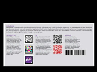 Mobile tagging allows marketers to provide additional digital content and information to consumers by scanning barcodes or tags with their mobile phones. Scanning a tag directs the user to a website, video, image or other online content related to a product, brand or service. This brings the online and offline together in an interactive way. It gives users a feeling of control over the content they receive and allows marketers to provide deeper product information, customer service instructions, or time-sensitive updates through mobile tags. Examples include using tags for brand awareness, product reviews, behind-the-scenes content, or scan-triggered status updates.
