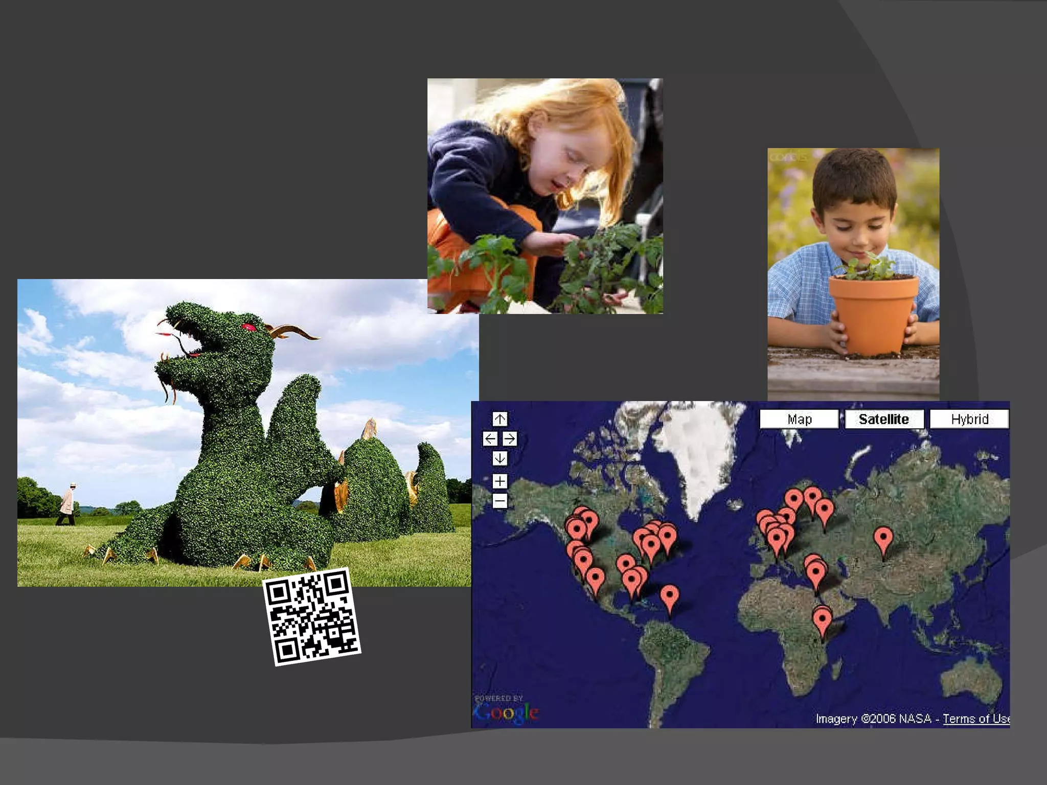 The document discusses ways to connect physical objects and locations to digital information by embedding QR codes that can be scanned by mobile devices. This would allow physical items like seeds packets or objects in libraries to tell their stories and share knowledge when scanned, weaving together the digital, physical, and mobile worlds. A simple example given is adding QR codes to seed packets that are then mapped on an open platform for creative people to engage with.