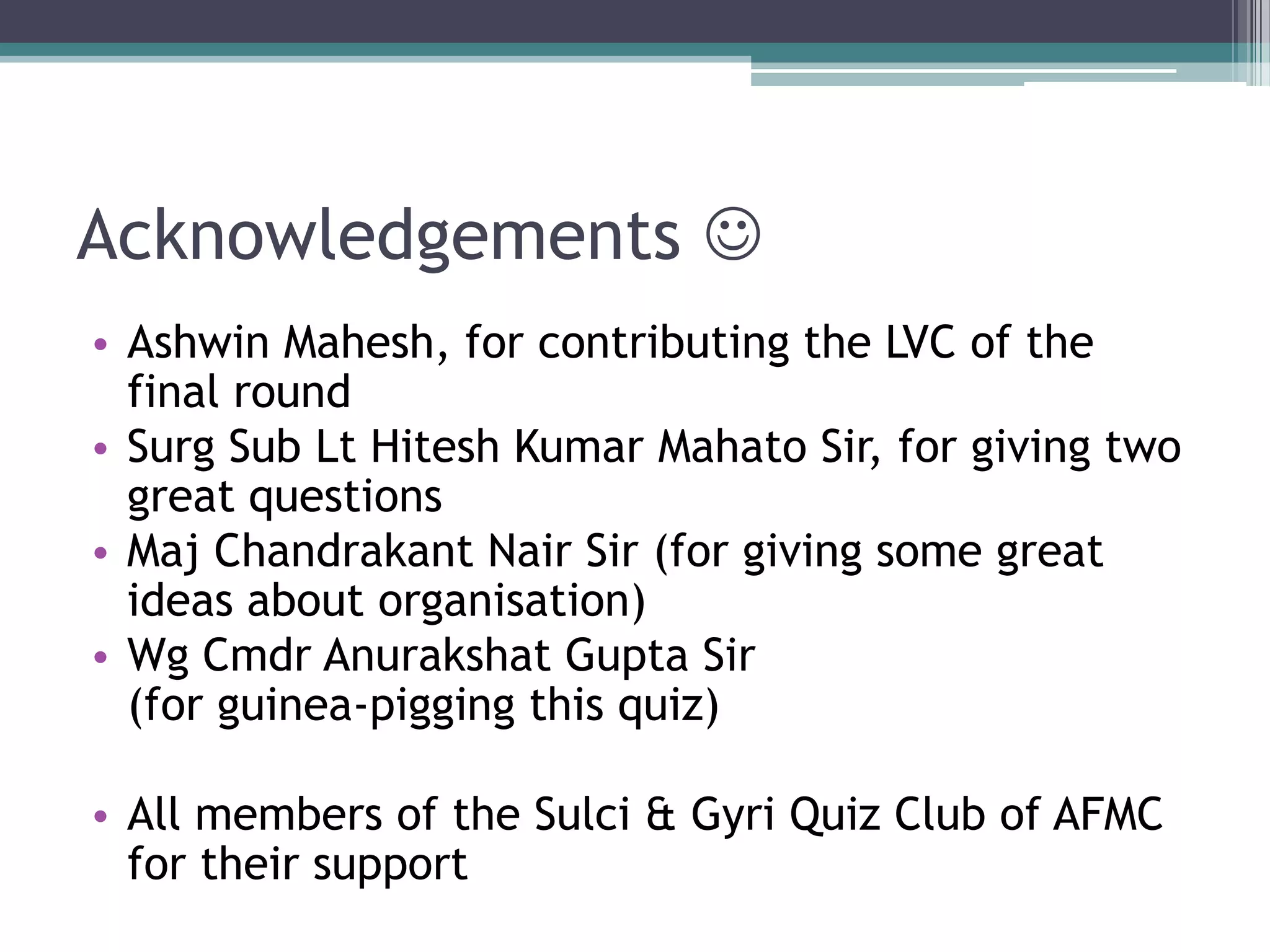 • All members of the Sulci & Gyri Quiz Club of AFMC