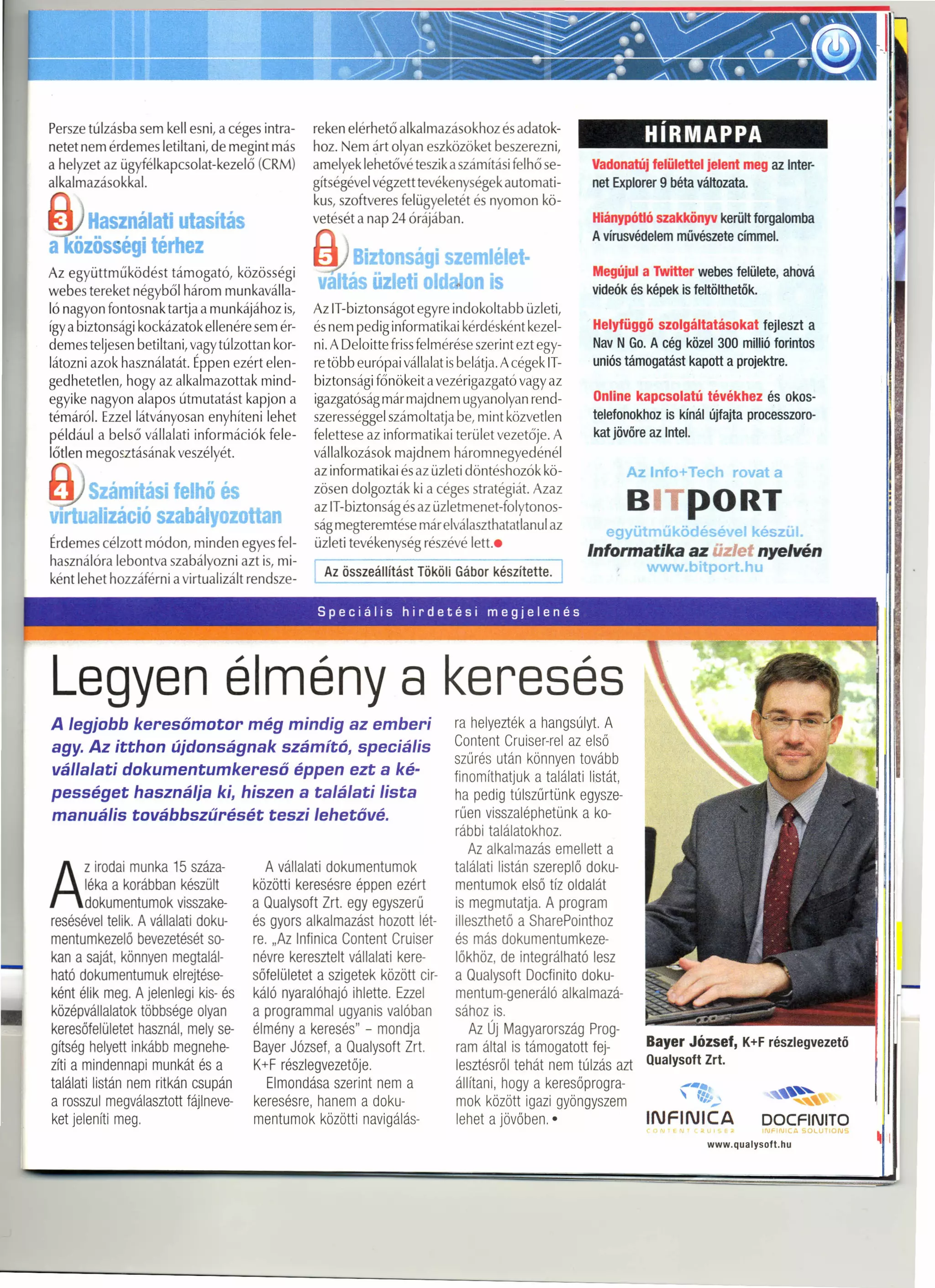 mentumkezelő bevezetését so- re. "Az Infinica Content Cruiser és más dokumentumkeze-