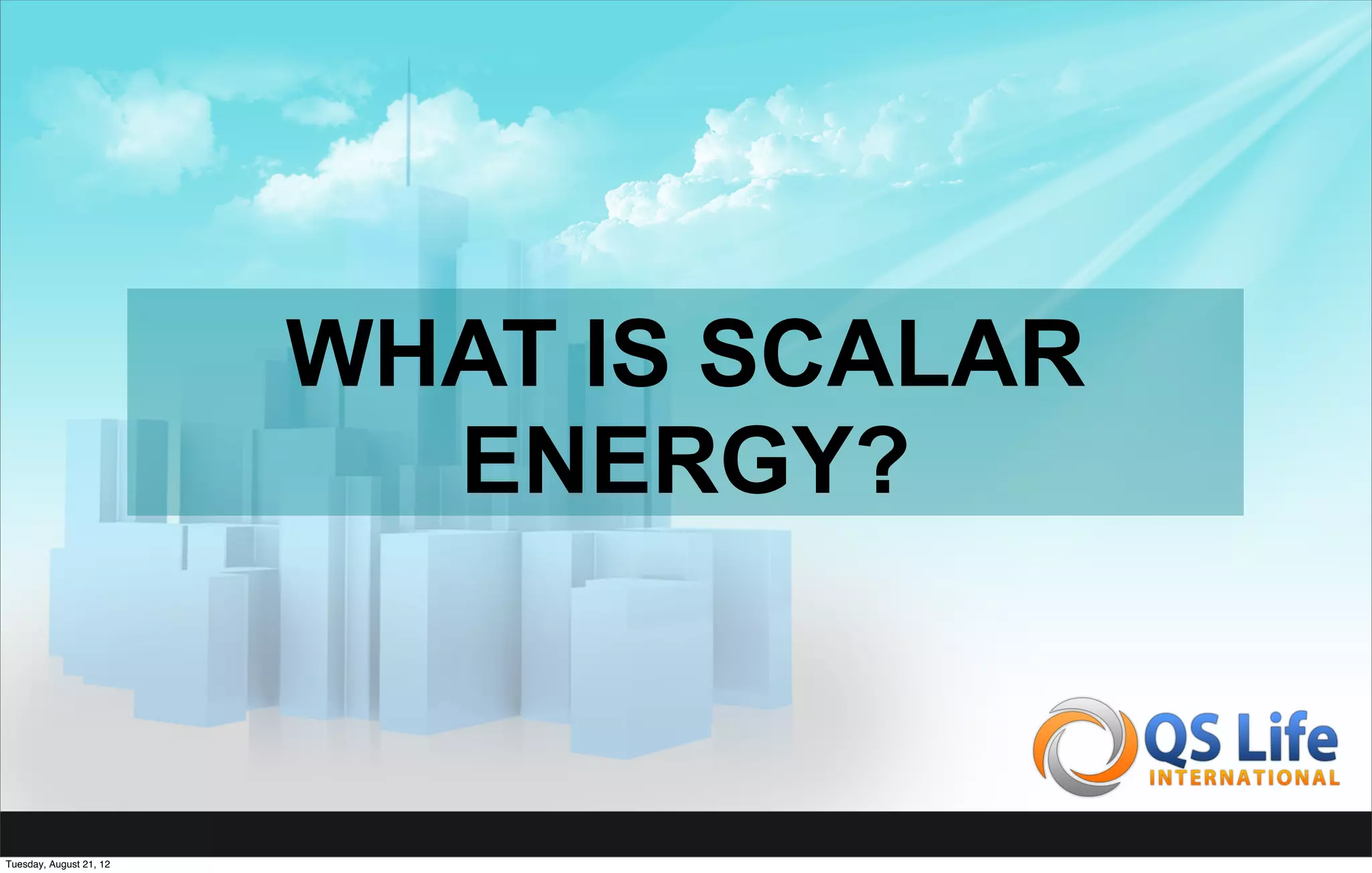 Scalar energy is a natural positive frequency that exists at the sub-atomic level and has healing properties. It is produced by the pulsation of electrons and protons in atoms and supplies energy to cells. Exposure to scalar energy can reinforce the bio-electric field, uncluster blood, sharpen brain function, restore healthy cell voltage, energize water, and provide numerous health benefits such as reducing inflammation, enhancing circulation and immunity, and helping to protect against disease.