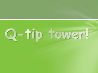 This document provides the rules for playing Q-tip tower, a game where players take turns placing individual Q-tips flat on top of an empty aluminum can to build a tower without making it fall. The youngest player goes first, each player earns points based on where Q-tips land when the tower falls, and the first to 25 points wins.