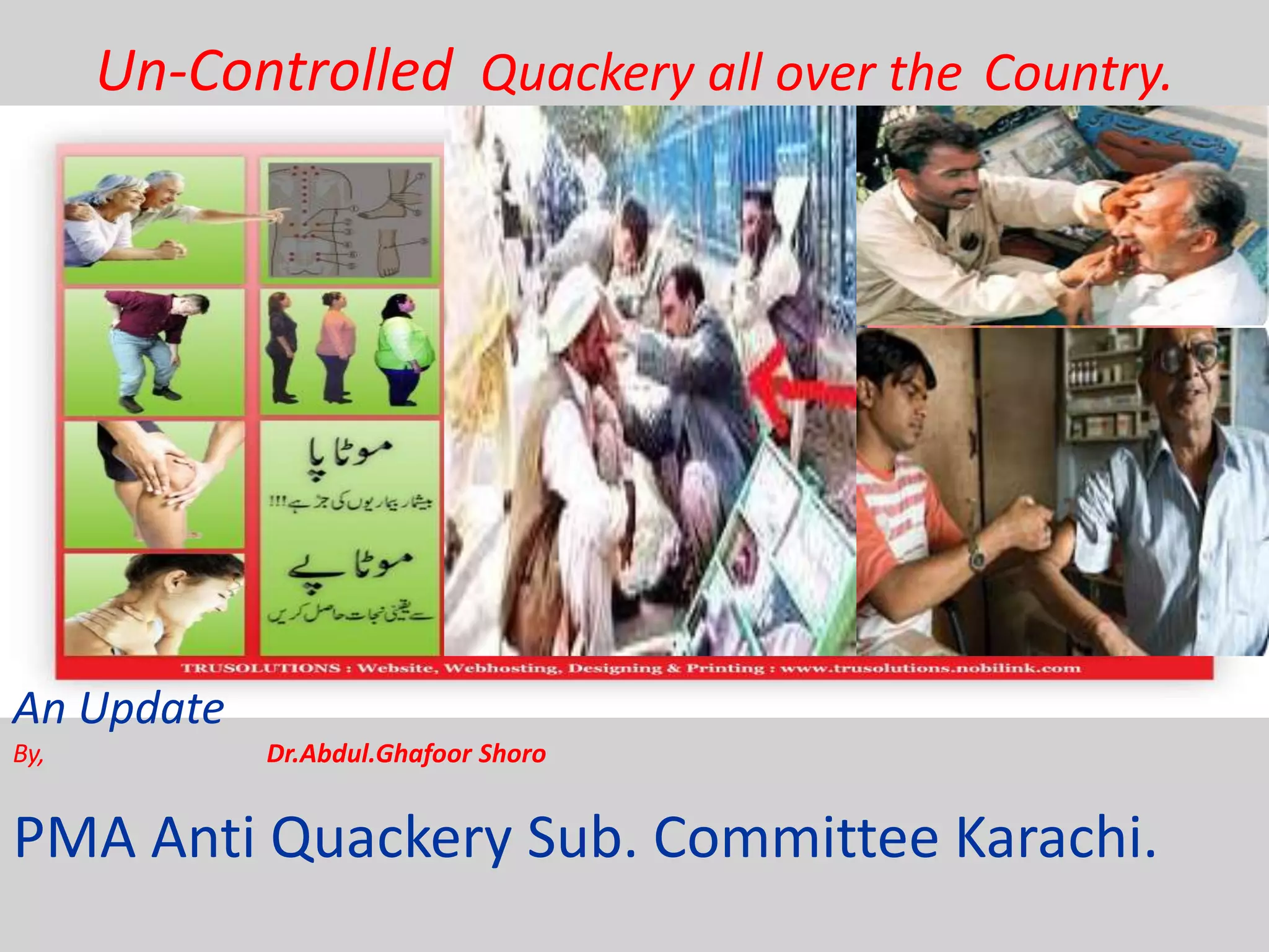 The document discusses the issue of quackery in Pakistan's healthcare system. It defines quackery and different types of quacks, including dispensers, LHVs/LHWs, street doctors, aamils, and sex experts. Statistics are provided on the number of registered doctors and dentists compared to the estimated number of quacks, which is over 600,000 according to one source. The document examines the reasons quackery persists, who is responsible, laws enacted against it, and what further actions are needed to curb unlicensed medical practice in Pakistan.