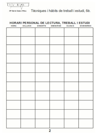 Durant la setmana tenim tres feines molt importants: fer els deures, llegir i estudiar.