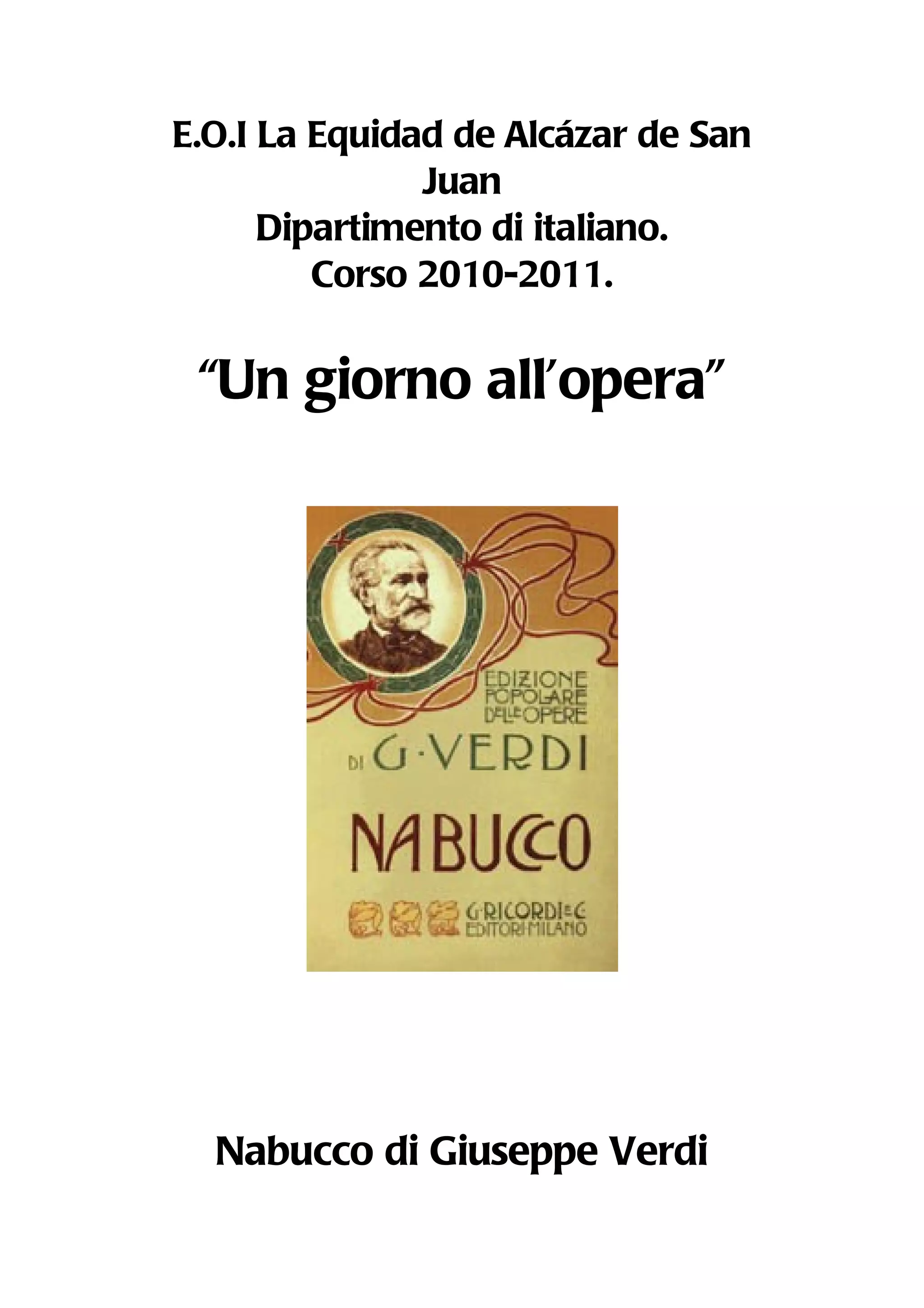 Il documento fornisce un'analisi dettagliata dell'opera 'Nabucco' di Giuseppe Verdi, la cui prima rappresentazione avvenne nel 1842, sottolineando l'importanza del coro 'Va' pensiero'. In aggiunta, viene descritto il contesto storico e personale dell'autore, le caratteristiche del melodramma e la struttura dell'opera. Infine, si evidenzia come 'Nabucco' sia diventato un simbolo di resistenza contro l'oppressione, in particolare per il popolo italiano durante il risorgimento.