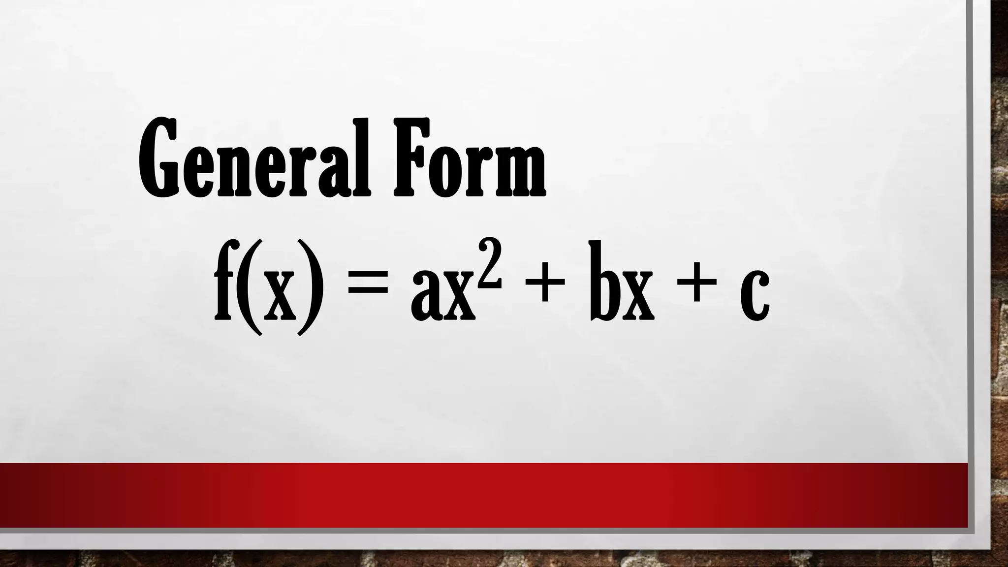 Introduces the General form (f(x) = ax² + bx + c) and Standard form (f(x) = a(x-h)² + k) of quadratic functions.