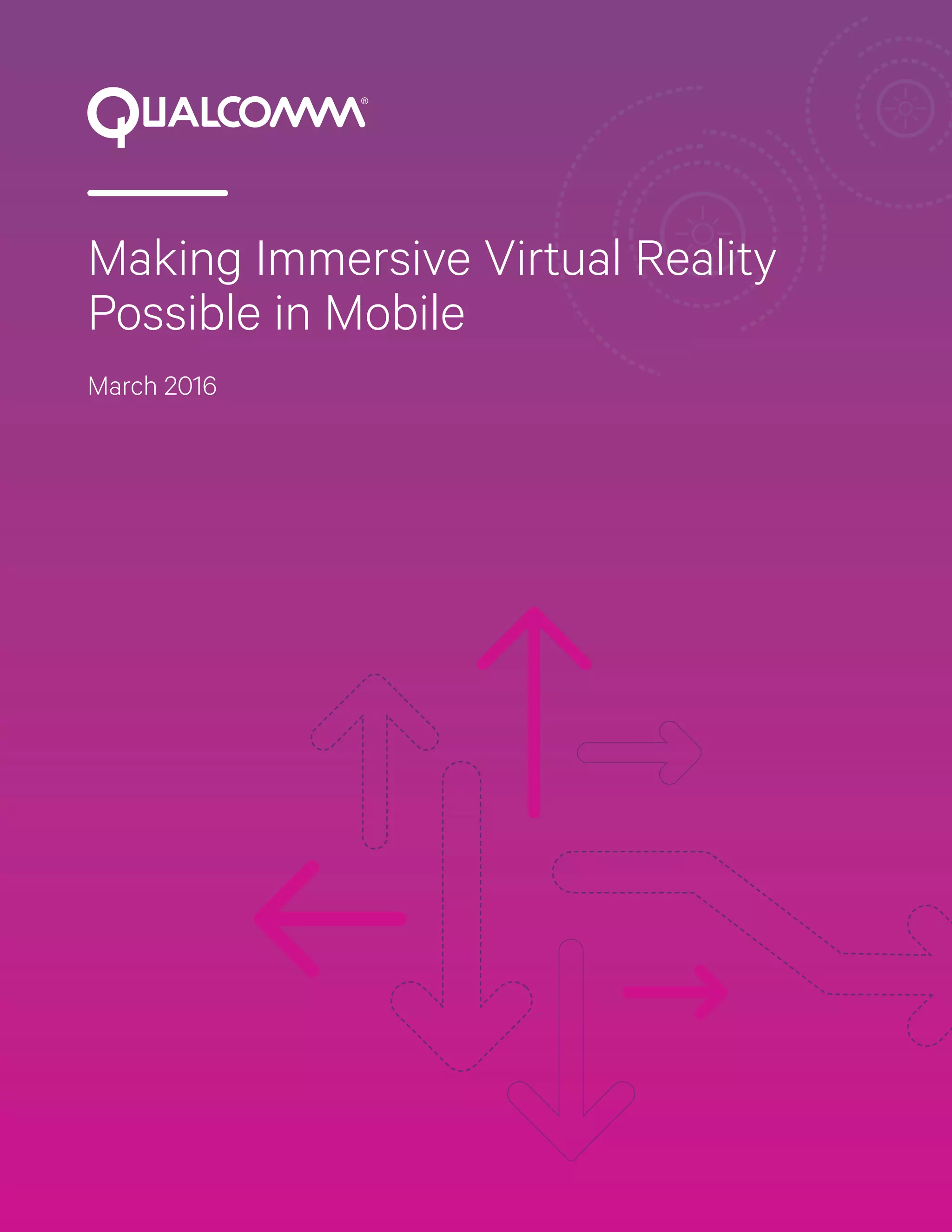 The document discusses the potential of virtual reality (VR) technology, highlighting its ability to create immersive experiences that redefine interaction through vivid visuals, accurate sound, and intuitive user interfaces. It emphasizes Qualcomm's role in advancing mobile VR by meeting the extreme requirements necessary for high-quality immersion, especially in portable formats. As technology and ecosystem factors align, the document predicts that mobile VR will significantly enhance various aspects of life, including play, learning, and communication.