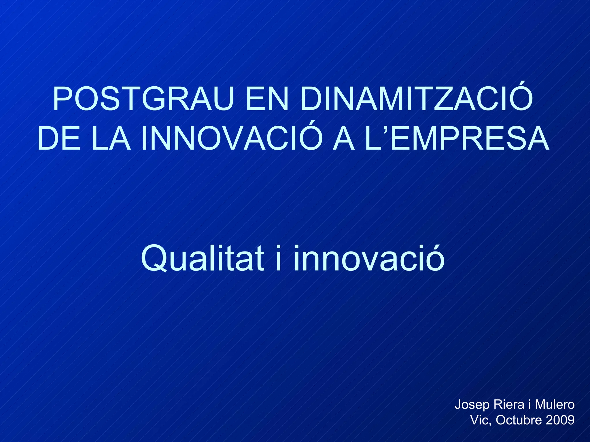 POSTGRAU EN DINAMITZACIÓDE LA INNOVACIÓ A L’EMPRESA Qualitat i innovació Josep Riera i Mulero Vic, Octubre 2009