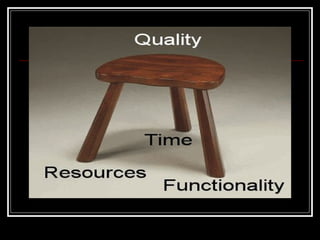 Quality refers to the total features and characteristics of a product or service that satisfy customer needs. It means freedom from deficiencies, doing things right the first time, and continuously improving performance to reduce costs, gain repeat business, and remain competitive. Quality is defined as meeting requirements, while grade refers to the technical characteristics of products or services for the same functional use. Quality control ensures requirements are being met through monitoring processes, while quality assurance demonstrates requirements are being met through activities like quality plans and audits. A quality system establishes organizational structure, responsibilities, procedures, and resources to consistently implement quality management through documentation and verification.